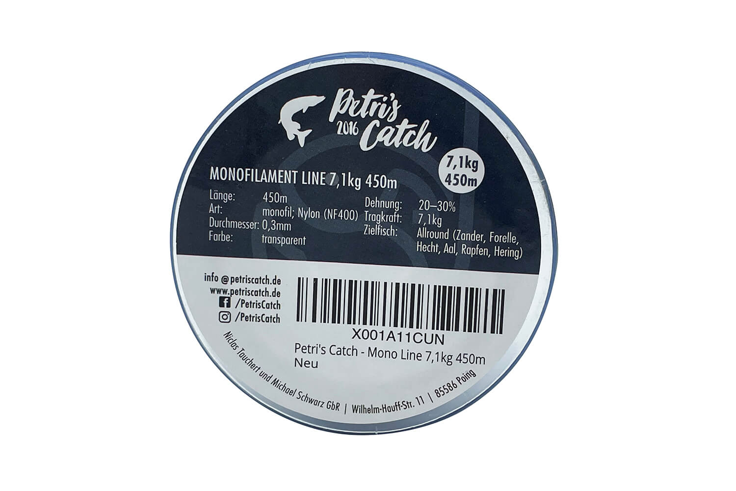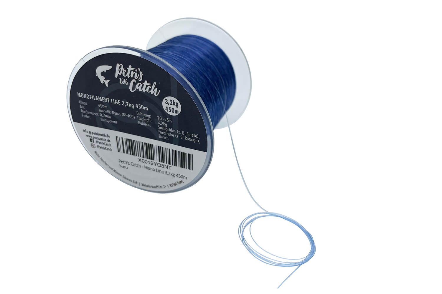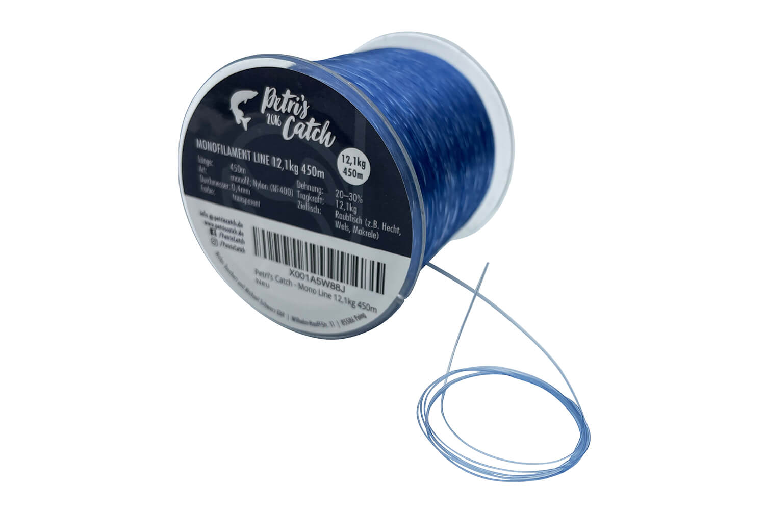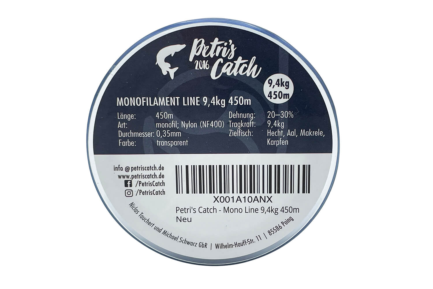 Die Petri’s Catch monofile Angelschnur aus hochwertigem NF 400 Nylon mit einer Länge von 450m überzeugt durch eine hochwertige Verarbeitung und gute Qualität. Besonderes Augenmerk wurde dabei auf die Langlebigkeit und Geschmeidigkeit gelegt - die Schnur weist einen geringen Memory-Effekt bei moderater Dehnbarkeit (20-30%) unter Belastung auf. Die hohe Maximaltragkraft von 12,1kg in Verbindung mit dem dünnen Durchmesser von nur 0,4mm und dem transparenten Material sorgen dafür, dass auf diese Monofile Raubfisch-Schnur in jeder Situation Verlass ist. Das hochwertige Premium-Material (NF 400 Nylon) hat eine glatte Oberfläche, die eine sehr hohe Robustheit gegen Hölzer, Steine oder sonstige Hindernisse im Wasser bei besonders starker Knotenfestigkeit sicherstellt. Monofile Schnüren sind besonders beliebt, weil sie unter der Wasseroberfläche so gut wie unsichtbar für den Fisch sind - damit schöpft selbst der erfahrenste Räuber keinen Verdacht! Diese Angelschnur eignet sich für den Einsatz in Süß- und Salzwasser und für das Angeln auf Raubfische (Hecht, Wels, Makrele etc.) Im Lieferumfang ist eine Rolle der Petri's Catch monofilen Raubfischschnur mit einer Länge von 450m enthalten. Je nach Beschaffenheit und Größe der individuellen Angelrolle können 450m auch für deutlich mehr als eine Bespulung ausreichen.
